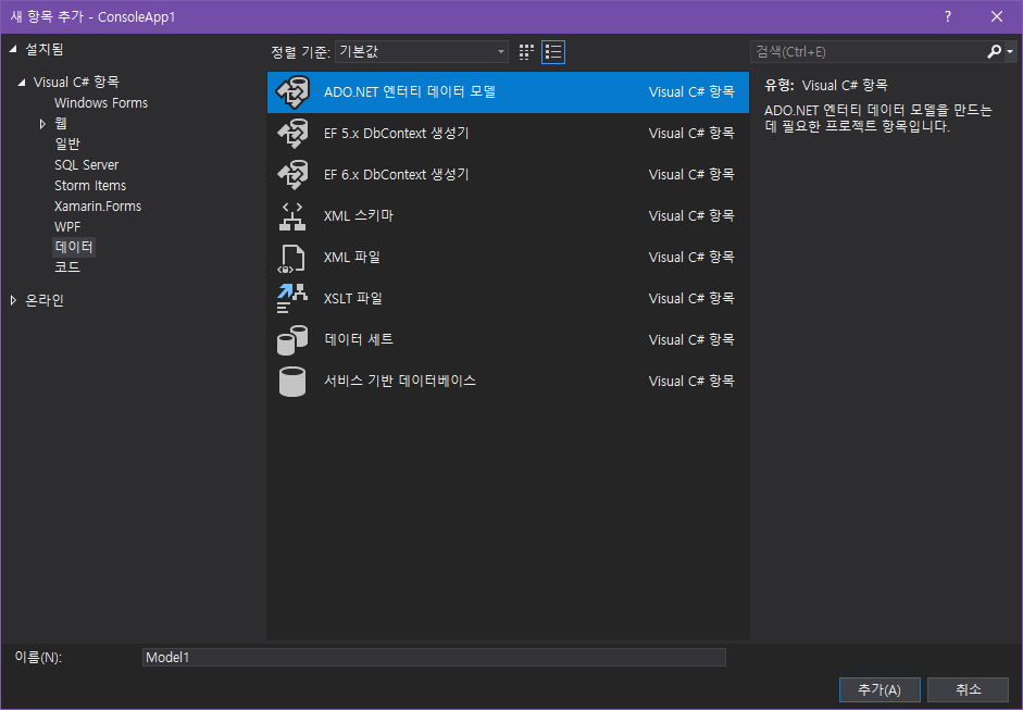 .NET Framework 프로젝트에선 볼 수 있는 모델 생성 화면. .NET Core 및 .NET 프로젝트에는 찾아 볼 수 없다. 어쩔 수 없이 cmd 명령어를 이용해서 DB 테이블을 모델화시켜야하나 싶던 중 Youtube의 공식 dotNET 채널에서 EFCorePowerTools를 소개해주어 설치하게 되었다.