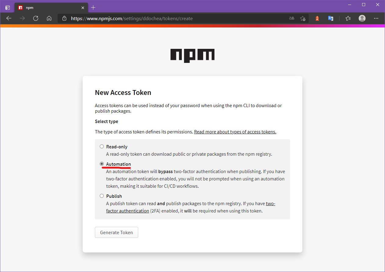 # publish-gpr: # needs: build # runs-on: ubuntu-latest # steps: # - uses: actions/checkout@v2 # - uses: actions/setup-node@v1 # with: # node-version: 12 # registry-url: https://npm.pkg.github.com/ # - run: npm ci # - run: npm publish # env: # NODE_AUTH_TOKEN: ${{secrets.GITHUB_TOKEN}}env 영역에 NODE_AUTH_TOKEN : ${{secrets.npm_token}} 를 보면 고정된 텍스트가 아닌 변수를 사용함을 알 수 있다.