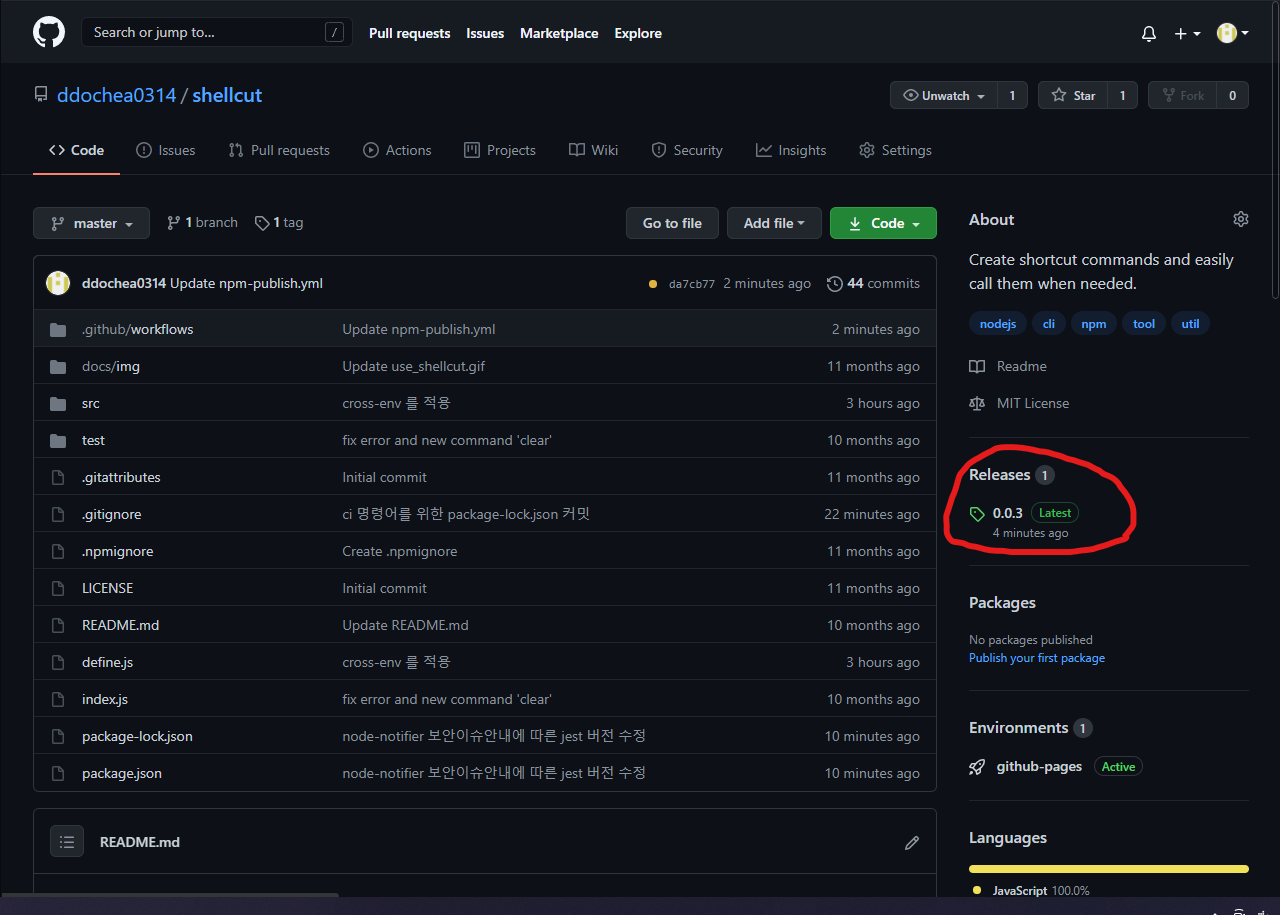 registry-url: https://registry.npmjs.org/shellcutnpm과 gpr(GitHub Packages)에 배포하는 workflow가 존재하는데, npm에만 배포할 예정이므로 publish gpr은 주석처리한다.