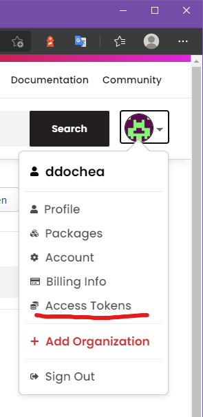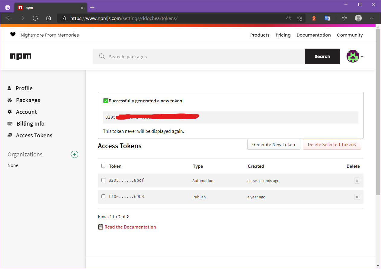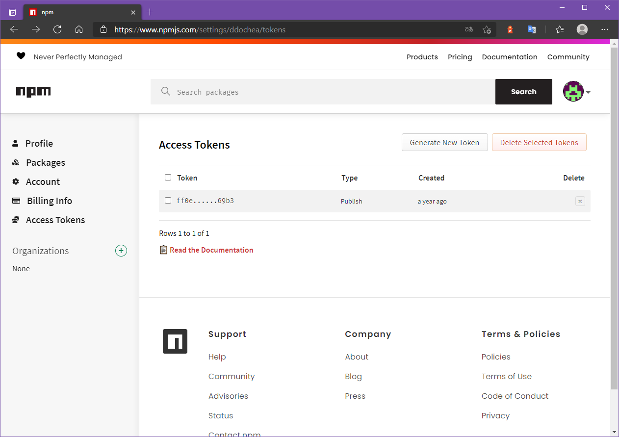 npm 사이트에 로그인 후 계정 아이콘을 눌러 Access Tokens 메뉴를 선택한다.