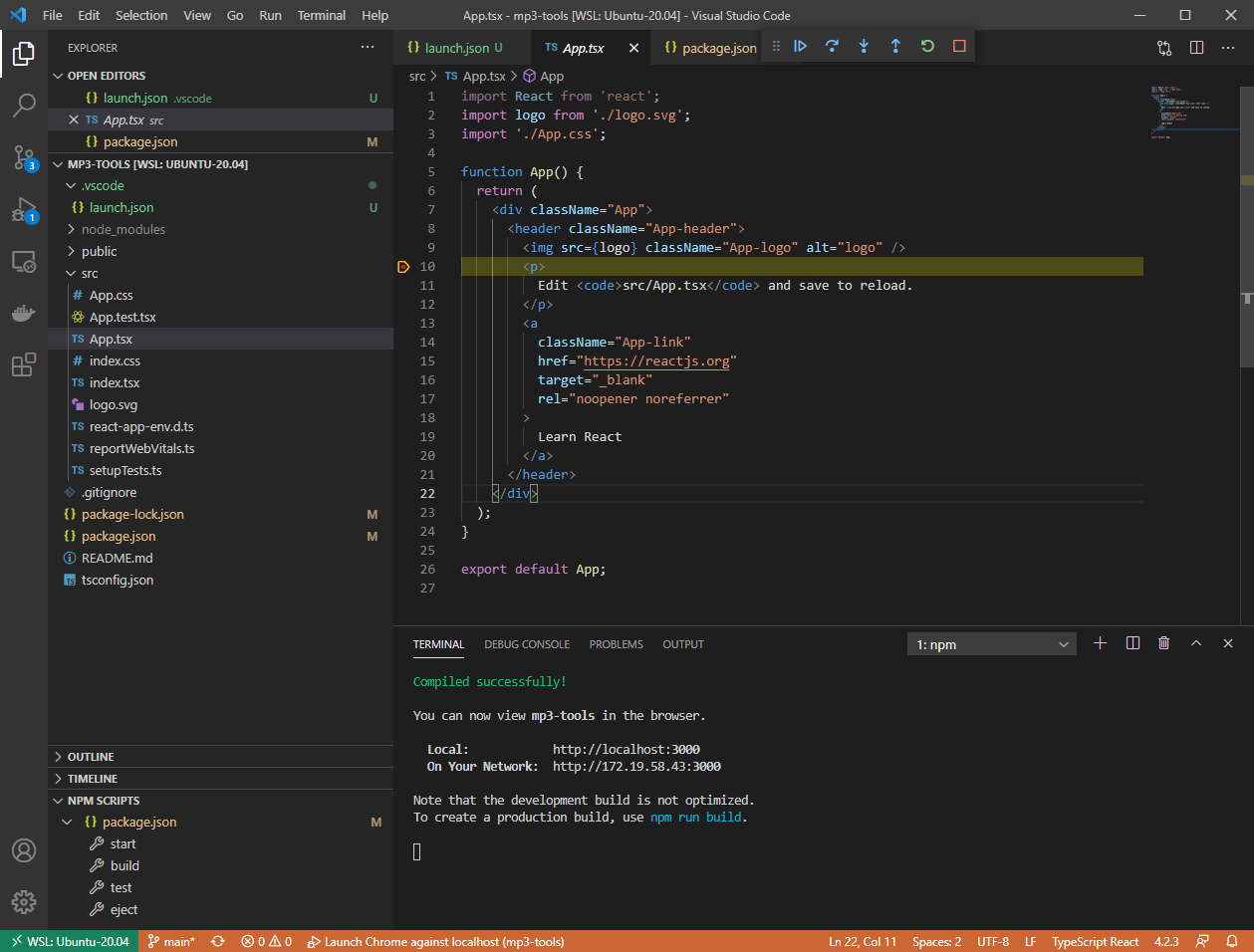 WSL에 React 프로젝트를 생성하고 웹 접속을 테스트해보았다. 그런데 기본 접속 정보인 http://localhost:3000 로 접근이 되지 않았다. IP를 입력해서 접근할 순 있겠지만, 이렇게 되면 "Debugger for Chrome"을 통한 React 프로젝트 디버깅을 수행할 수 없다.