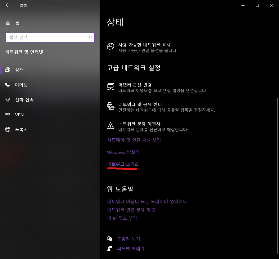 만약 다른 네트워크 설정이 포함되어있다면 시도하지 않는 것을 추천한다.1. 설정 이동