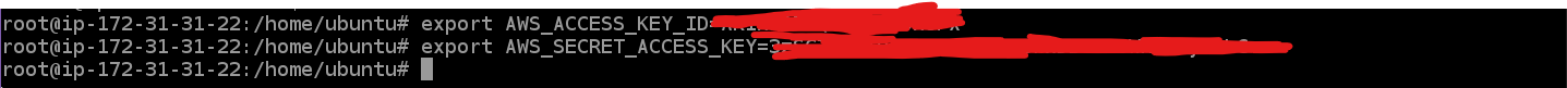 액세스 키 및 비밀키를 export 명령어로 적용한다.