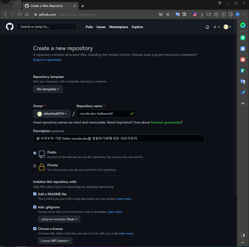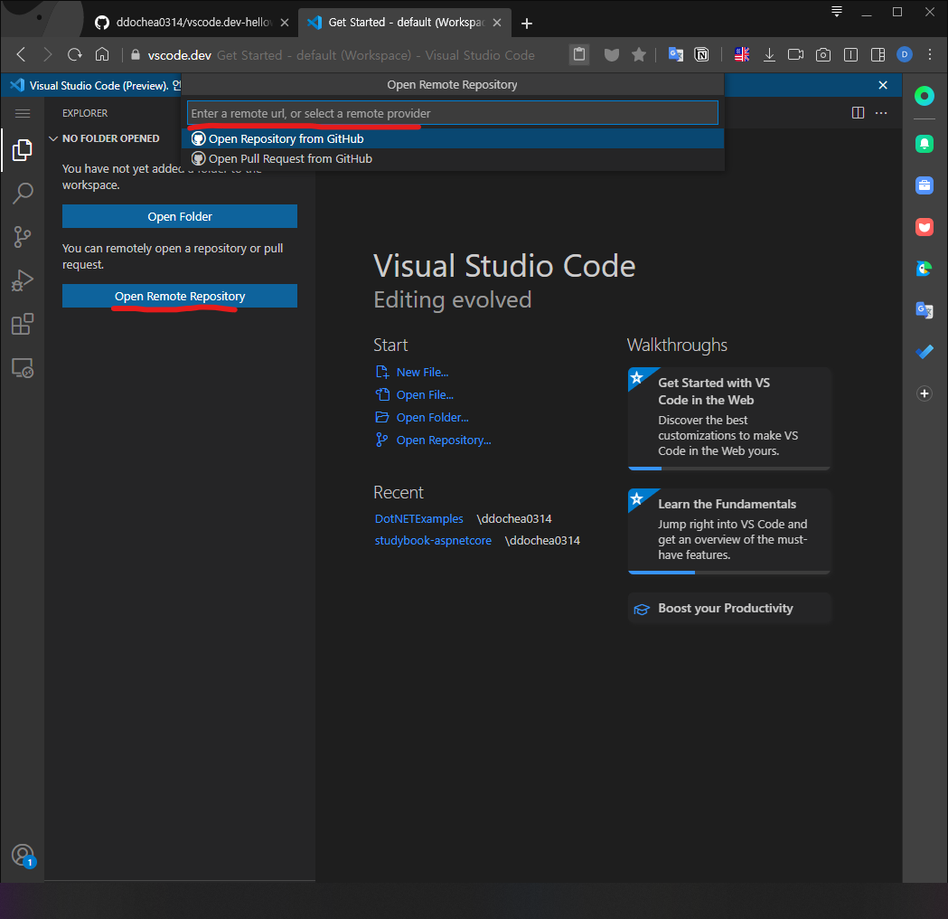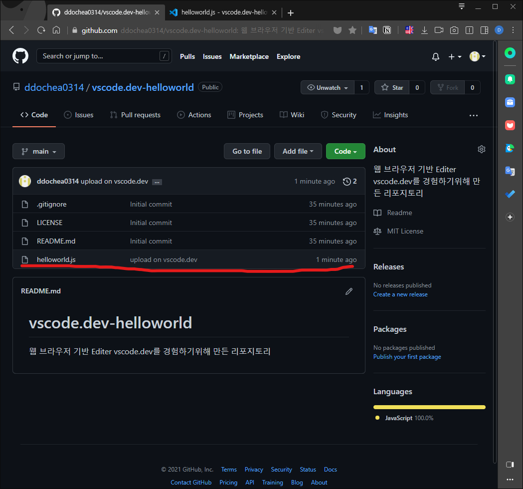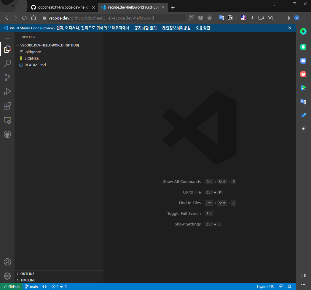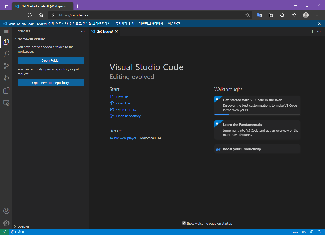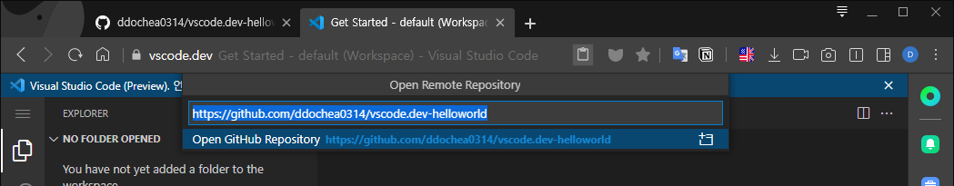 이것으로 vscode.dev를 간단하게 맛보았다.