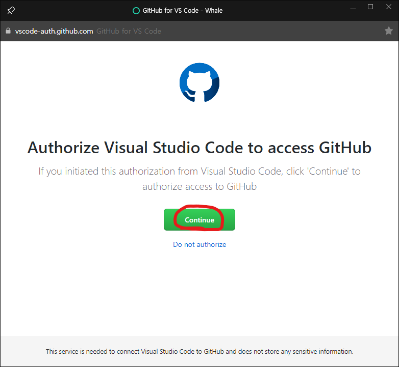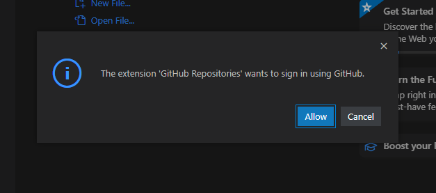 입력 후 아래에 나타난 `Open Github Repository` 를 눌러주면 아래와 같이 Github 로그인 동의 관련 팝업창이 나타난다. Allow를 누른다.
