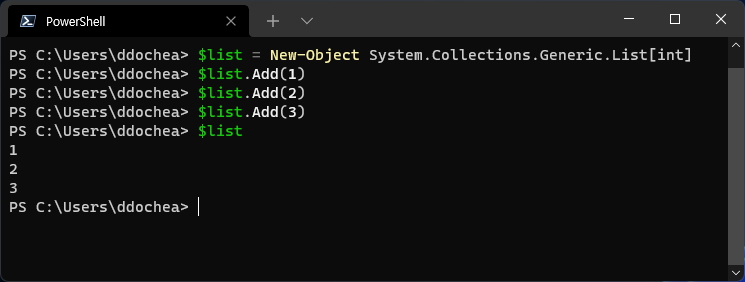 $list = New-Object System.Collections.Generic.List[int].NET 개발자라면 해당 코드가