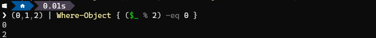 (0,1,2) | Where-Object ($_ % 2) -eq 1