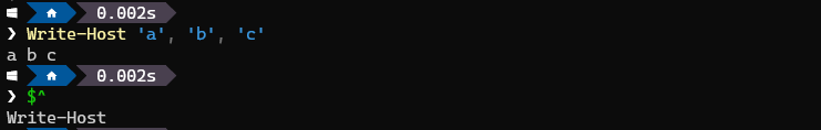 예시로 Write-Host 'a','b','c' 입력시 가장 마지막 토큰인 c가 출력된다.
