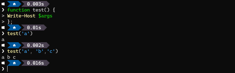 function test() { Write-Host $args };