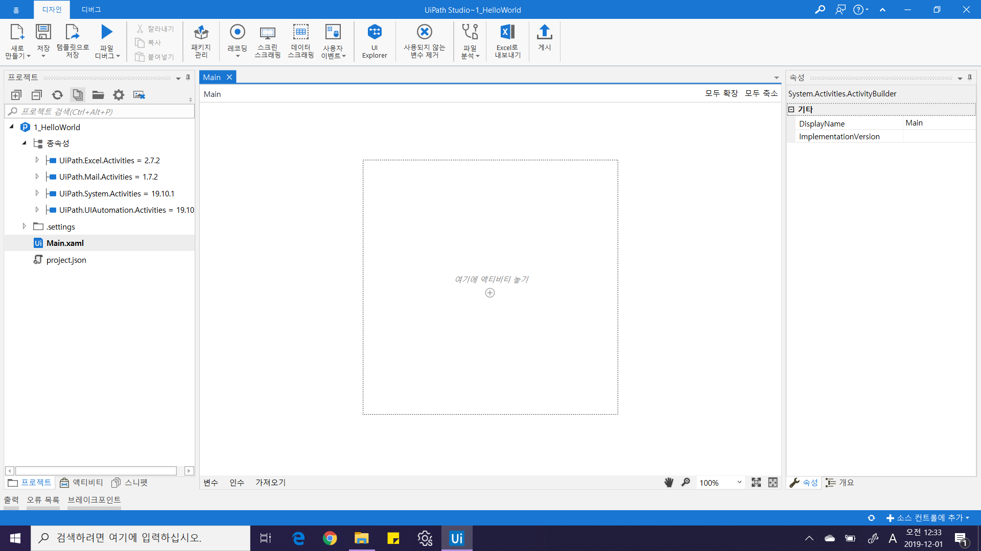 Hello World! 환영합니다! 이제 RPA 세계에 발을 담그셨습니다.