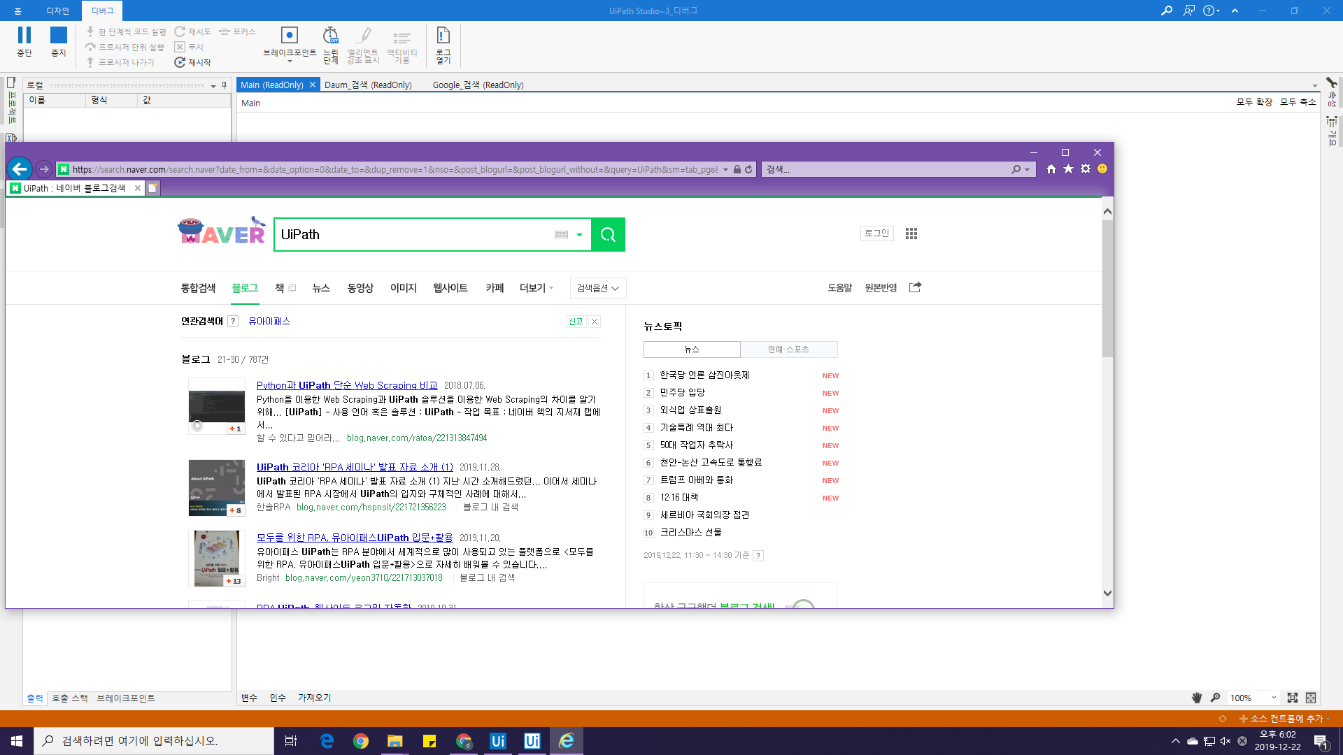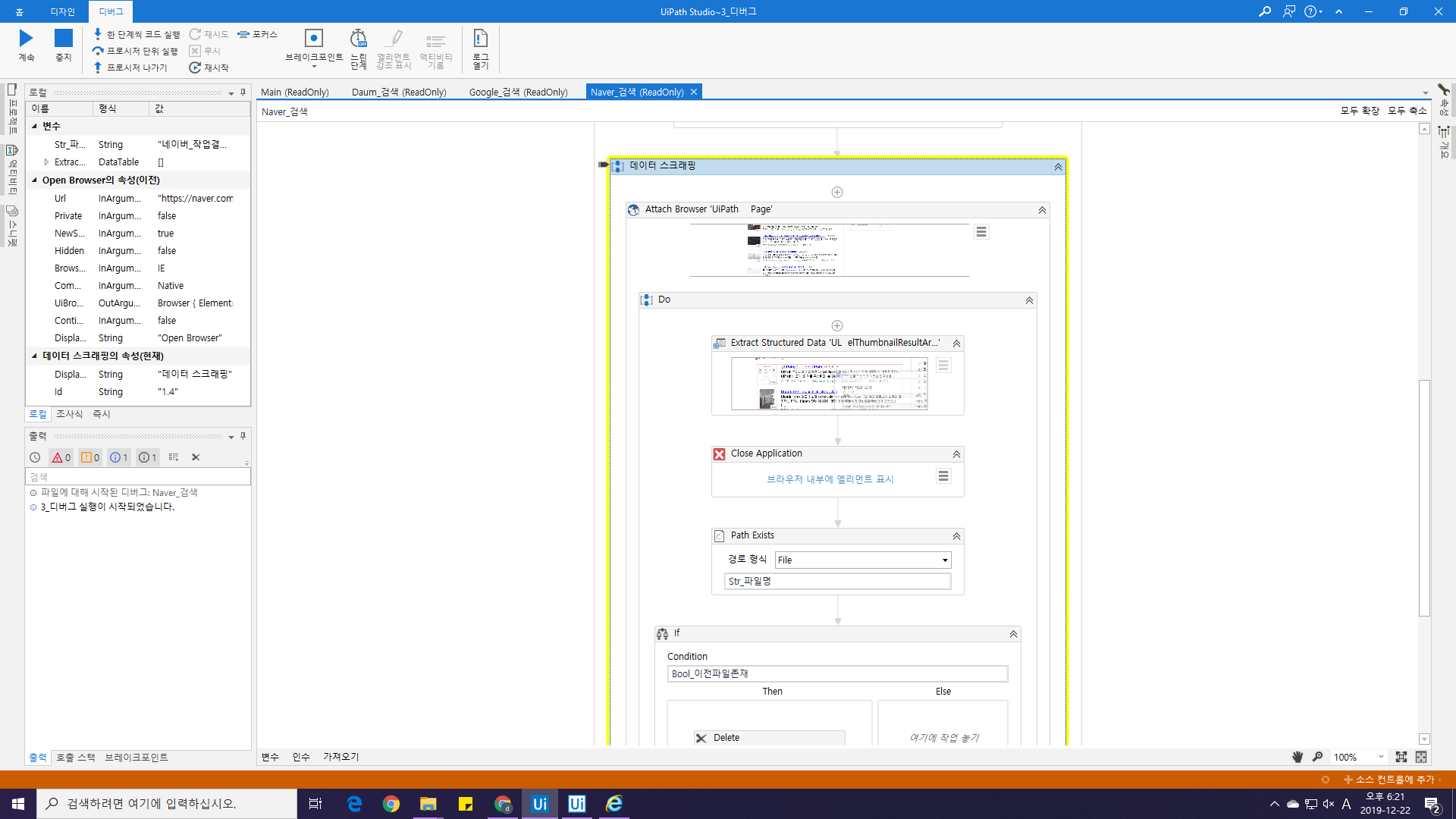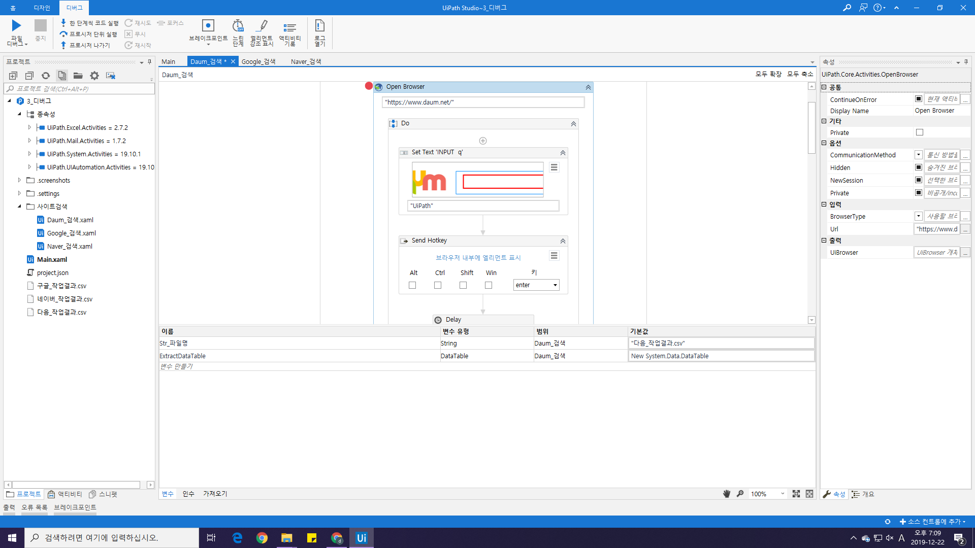 [UiPath 기초] 4. 셀렉터(Selector) - 1 (0) 2020.01.11 [UiPath 기초] 3. 디버그(Debug) - 3 (0) 2019.12.29 [UiPath 기초] 3. 디버그(Debug) - 1 (2) 2019.12.22 [UiPath 기초] 2. 변수(Variables) - 3 (4) 2019.12.15 [UiPath 기초] 2. 변수(Variables) - 2 (1) 2019.12.08