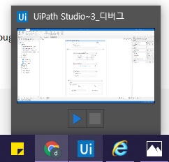 파일시작 및 중지버튼은 윈도우 작업 표시줄에도 존재합니다. UiPath 아이콘에 마우스 커서를 대보세요.