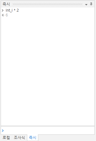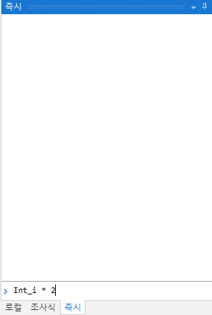 엔터프라이즈버전 기준으로 19.10 이후에는 "즉시"라는 탭이 생겼는데 조사식과 마찬가지로 값에 식을 입력하여 데이터를 확인하는 기능을 제공합니다. Visual Studio를 사용하는 C# 개발자분들은 "C# Interactive"를 떠올리실 수 있을 것 같은데 그정도 기능까진 제공안하는 것 같습니다. 😅