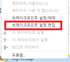 컨텍스트메뉴에서 "브레이크포인트 설정 편집"을 선택하세요.