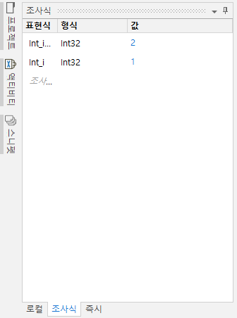 본래의 Int_i 값을 확인할 수 있습니다. 이처럼 조사식은 단순 값의 확인뿐만이 아닌, 식이나 메소드를 추가했을때 예상되는 수정된 값의 상태를 미리 확인할 수도 있습니다.