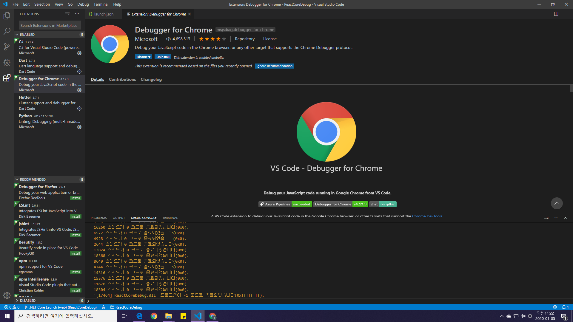 1. Debugger for Chrome 설치