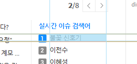 오류가 유발되었던 '1위 이혜성' 이란 aaname과 이 포스트를 작성하는 시점인 '1위 불꽃 신호기' 검색어에는 공통적으로 들어가는 단어와 그렇지 못한 단어가 있습니다. 공통적으로 '1위'라는 단어가 들어가고, 시간에 따라 '이혜성','불꽃 신호기'는 다른 단어로 바뀔 수 있습니다.