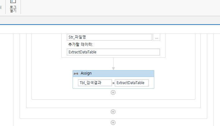 검색결과값이 저장되는 ExtractDataTable 변수값을 인수"Tbl_검색결과"에 대입합니다.