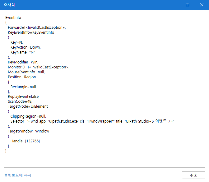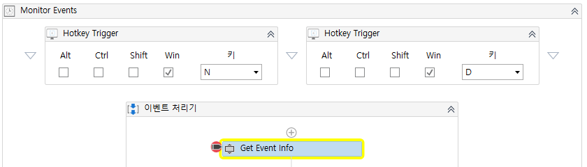 '[입력키 값] = Win+N' 식으로 비교하면 되겠습니다. 그럼 '입력키 값'은 어떻게 구해야할까요?2. Get Event Info 추가