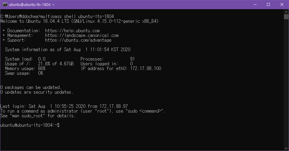 multipass shell {인스턴스명}