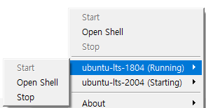 반응형생성이 완료되면 트레이 아이콘에 생성한 인스턴스에 대한 관리메뉴가 생긴다.